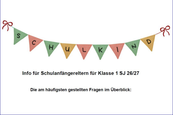 Infos für Schulanfängereltern Klasse 1 für das Schuljahr 2026/27