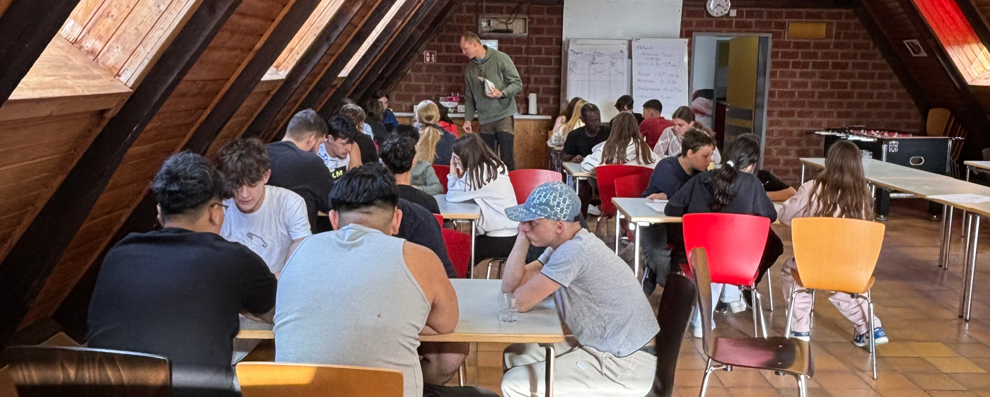 Am Donnerstag gab es um 8 Uhr Frühstück, und danach startete unser Barcamp. Dabei haben wir über verschiedene Themen und Projekte für das Schuljahr gesprochen, z. B. wie wir Abläufe verbessern oder neue Ideen umsetzen können. Unsere Schülersprecher Abbas Hussein und Saidzia Mirzaie haben das Ganze geleitet und sich Notizen gemacht. Zum Mittagessen gab es Hotdogs, und anschließend hatten wir Freizeit – viele haben Fußball gespielt oder einfach nur gechillt.