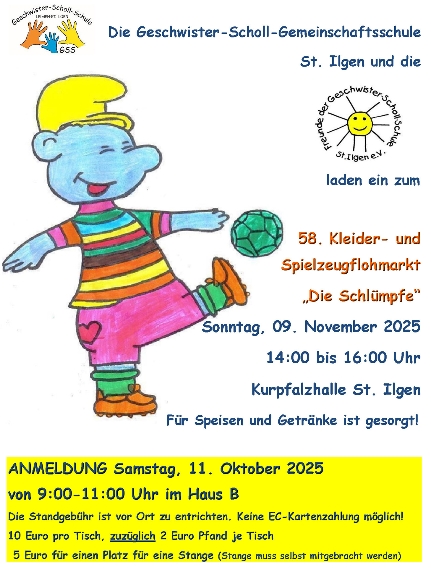Anmeldung zum Flohmarkt "Schlümpfe" (So. 9.11.2025):