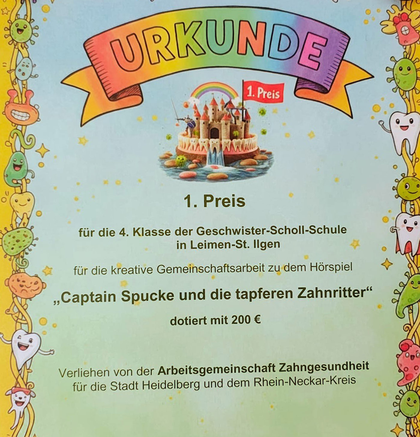 Große Freude in der GSF! Die Viertklässler haben den Wettbewerb der Arbeitsgruppe Zahngesundheit zum Thema Zahngesundheit gewonnen. Unter dem Motto „Captain Spucke“ waren Kinder aufgerufen, ein kreatives Video oder Foto rund um das Thema einzureichen.